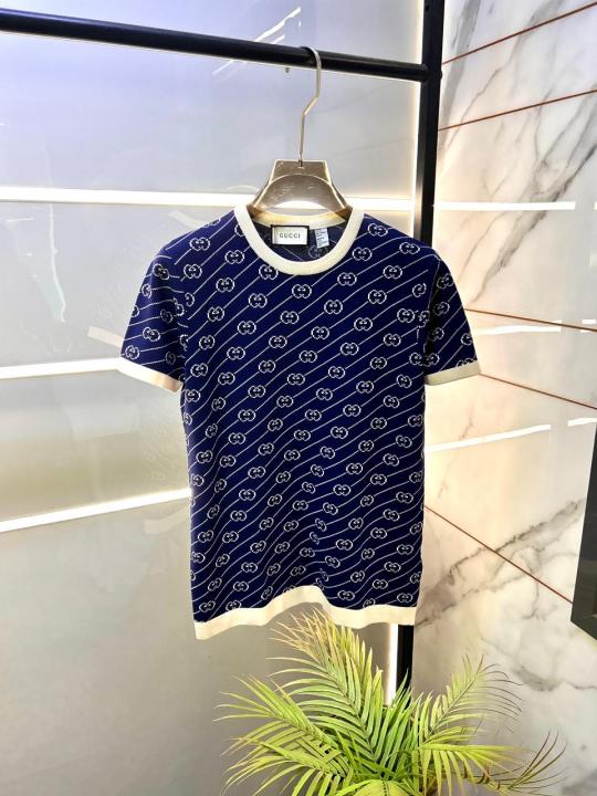 Home T-Shirts Gucc i Imported Monogram Navy knitted Super Premium Round Neck T-shirt F3511-NY